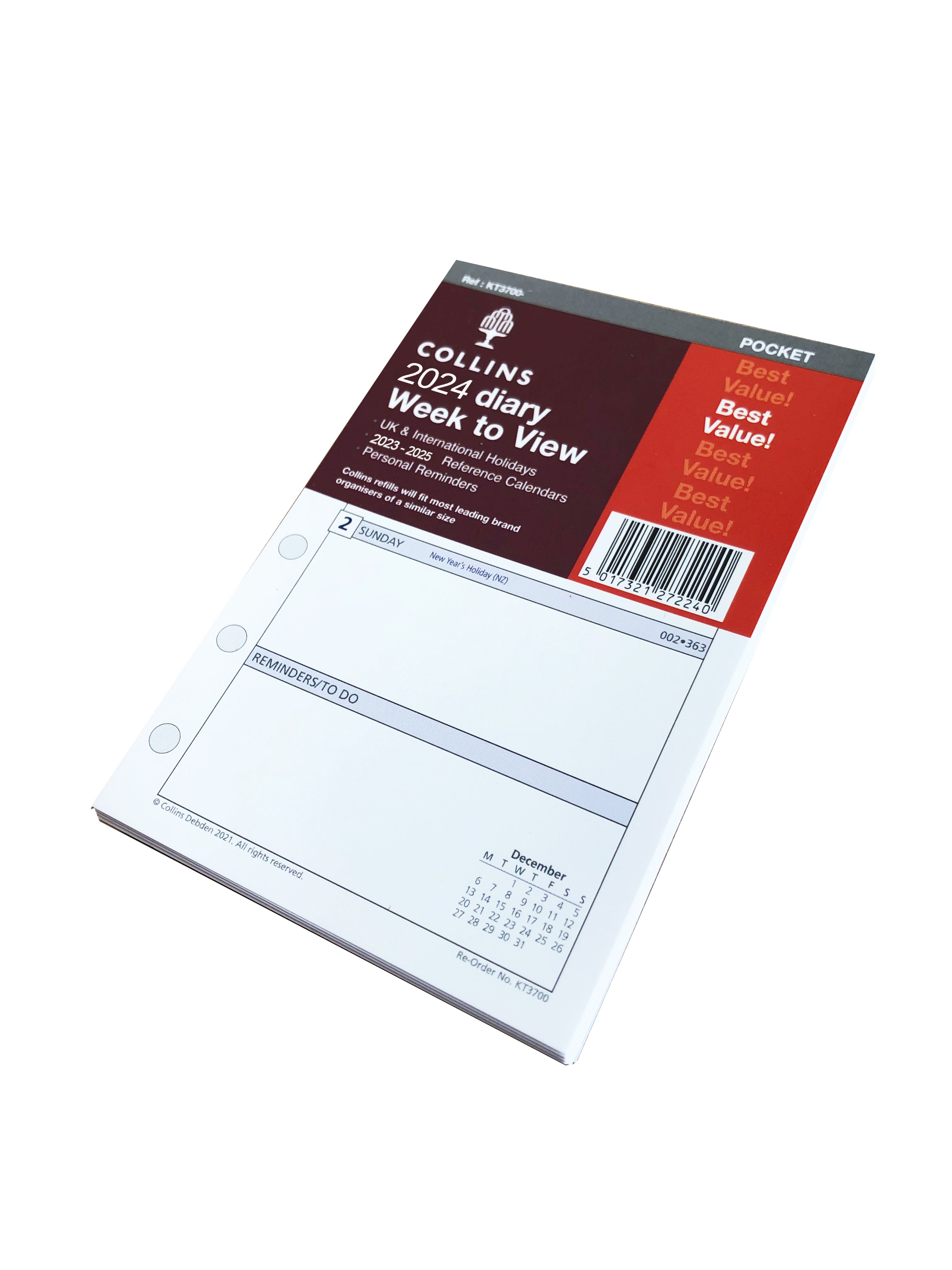 Pocket Organiser 2024 Week to View Refill โ Collins Debden UK